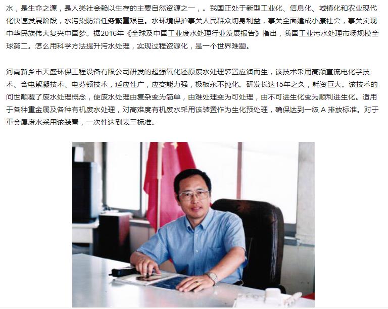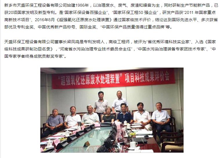 中國高新技術網發(fā)布:《關注:解碼科技創(chuàng)新》——新鄉(xiāng)市天盛環(huán)?!俺瑥娧趸€原廢水處理技術”