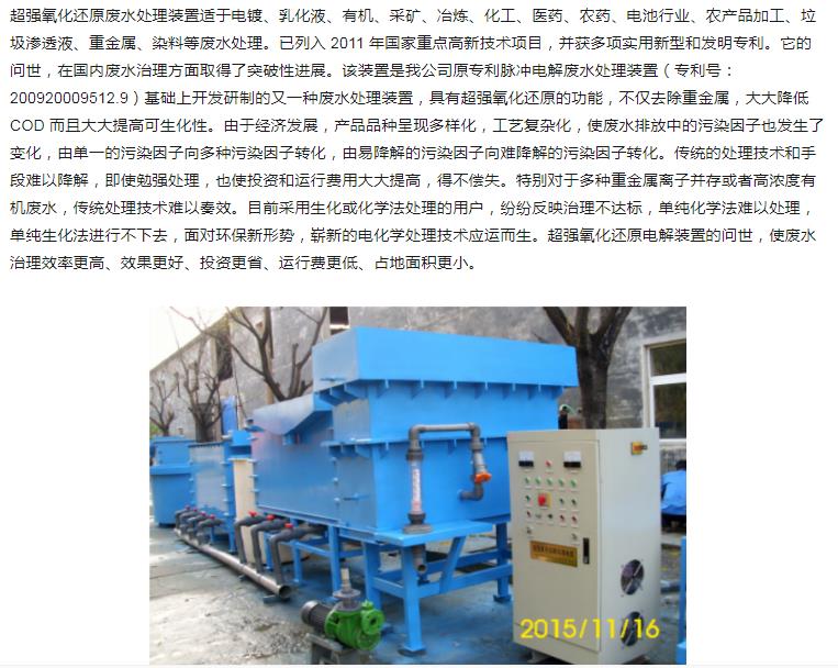 超強氧化還原廢水處理裝置(CYH法)處理各種有機廢水、各種重金屬廢水